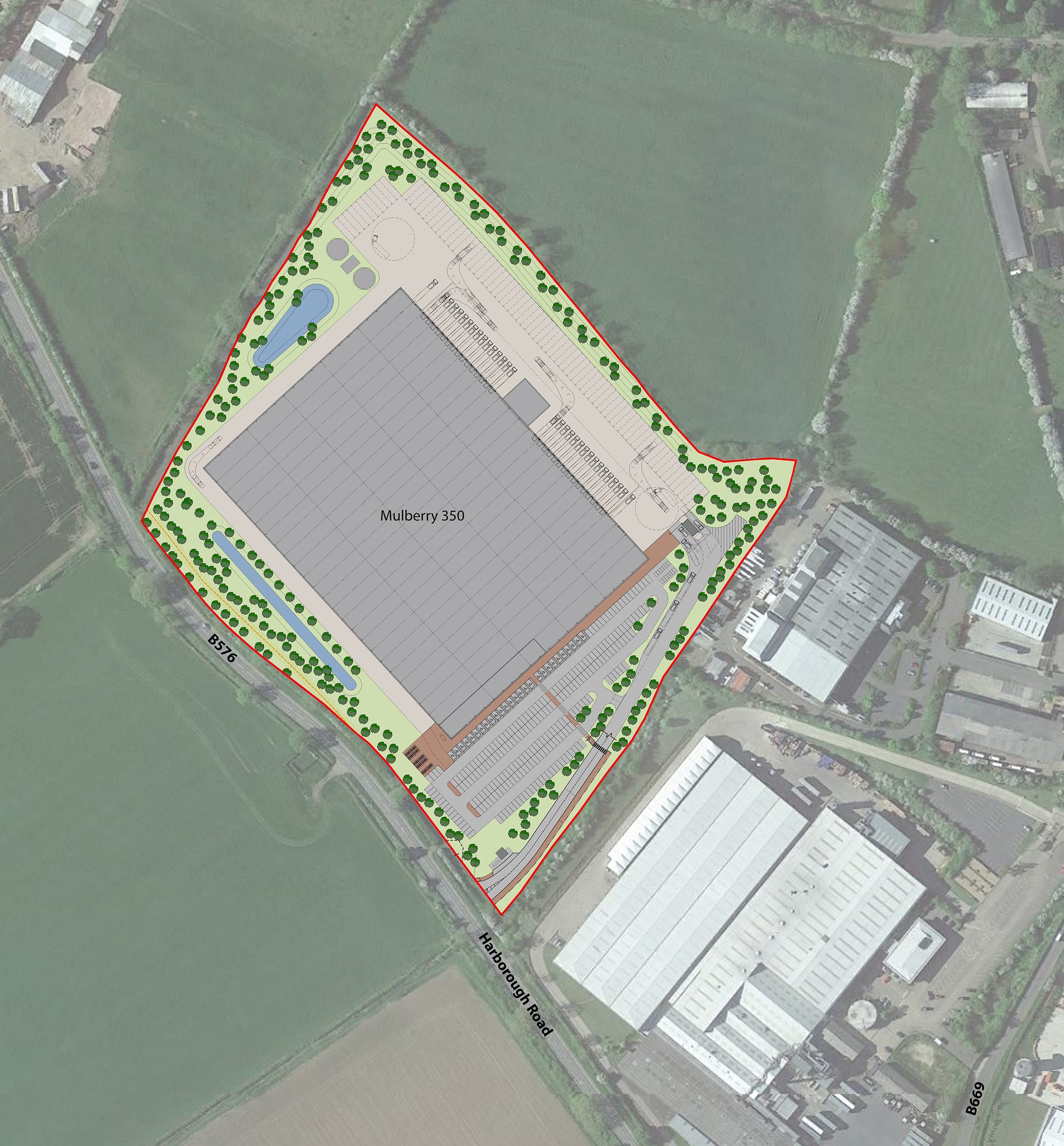 The proposal, by Mulberry Commercial Developments, is an industrial development with landscaping on the eastern side of Harborough Road.